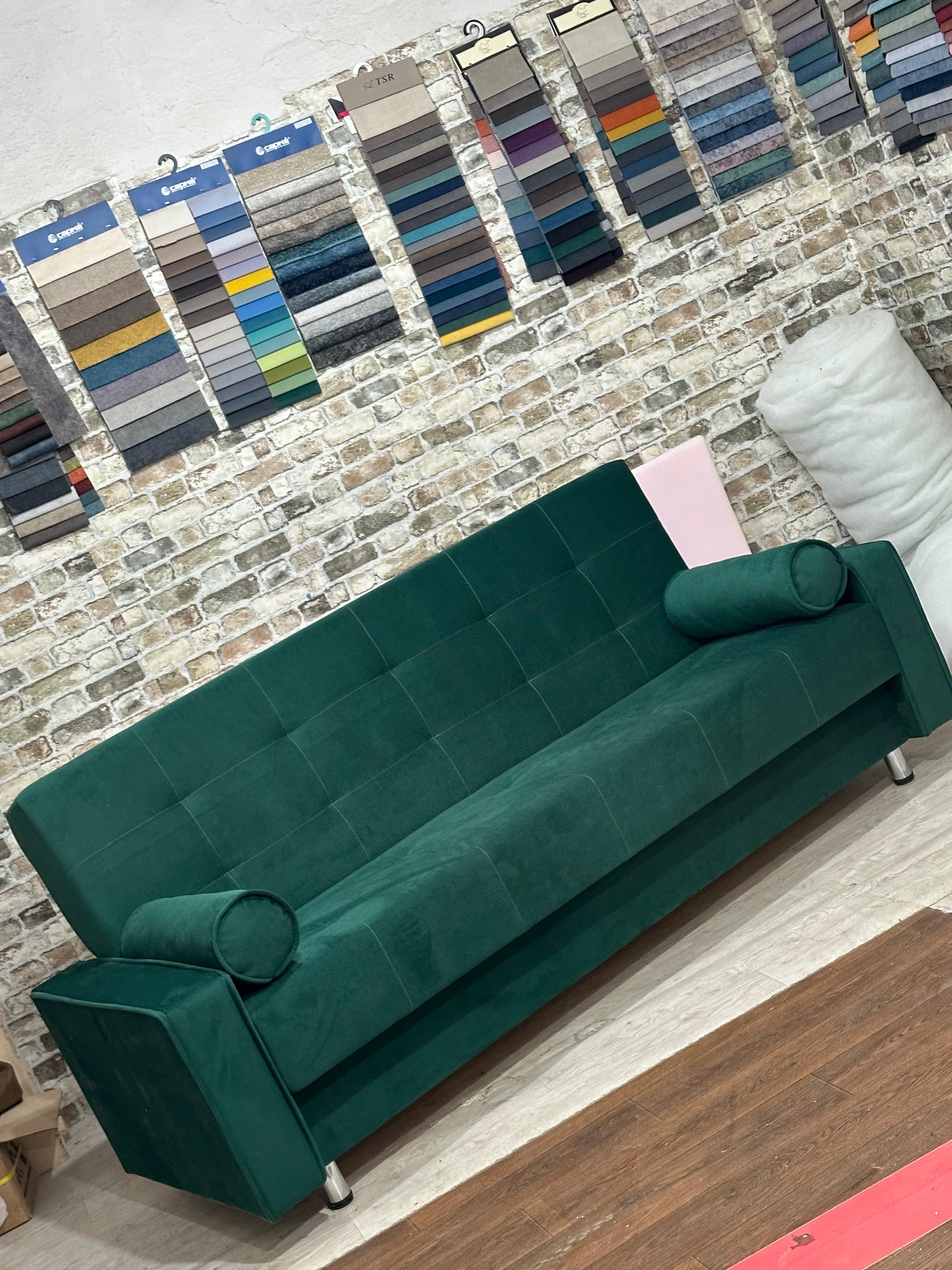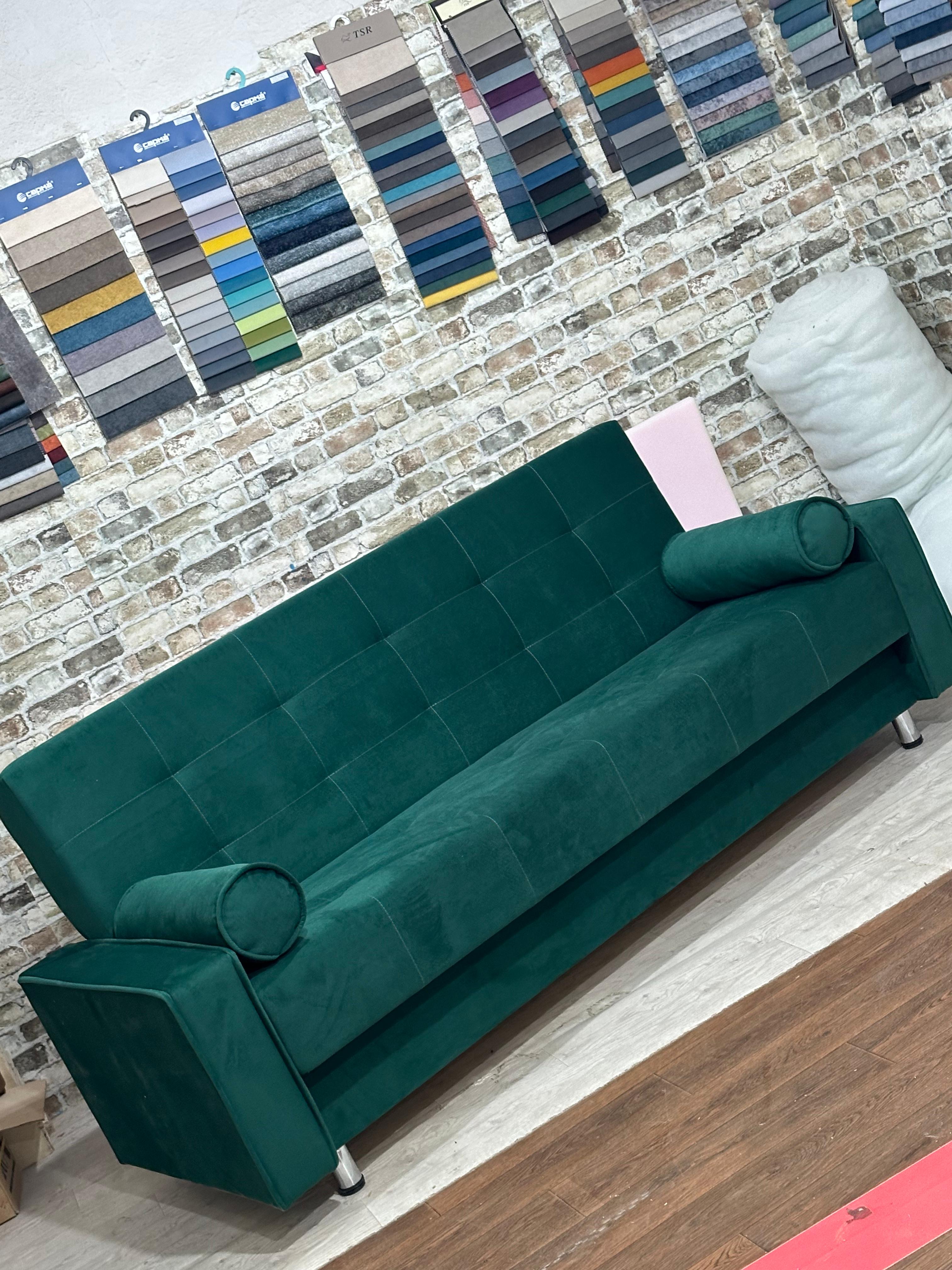 При Вашем желании можно изменить дизайн и ширину подлокотников. Также можно установить ламинат (утопленный вариант, наложение и на хромированных трубках). Диван Книжка это один из самых распространенных видов диванов. Он пользуется популярностью из-за своего удобства, долговечности и приемлемой цены. Он легко может трансформироваться в кровать-кушетку и обратно с помощью простого шарнирного механизма. Диван имеет вместительный ящик для хранения белья. Данную модель можно заказать по Вашим размерам и пожеланиям (изменение длины и ширины спального места. Также возможно изменение наполненияПенополиуретан, или Независимый пружинный блок. А множество вариантов расцветки тканей, представленных в разделе Ткани. позволит подобрать диван исходя из ваших индивидуальных предпочтений.