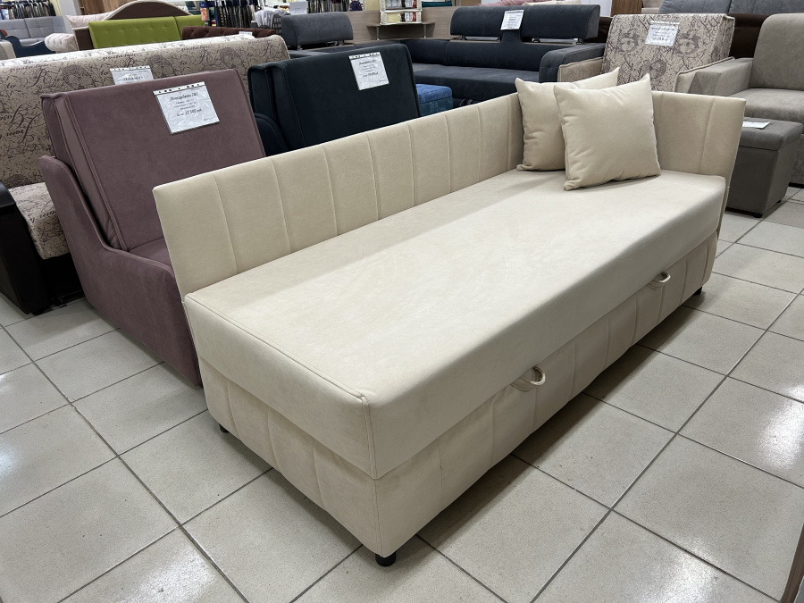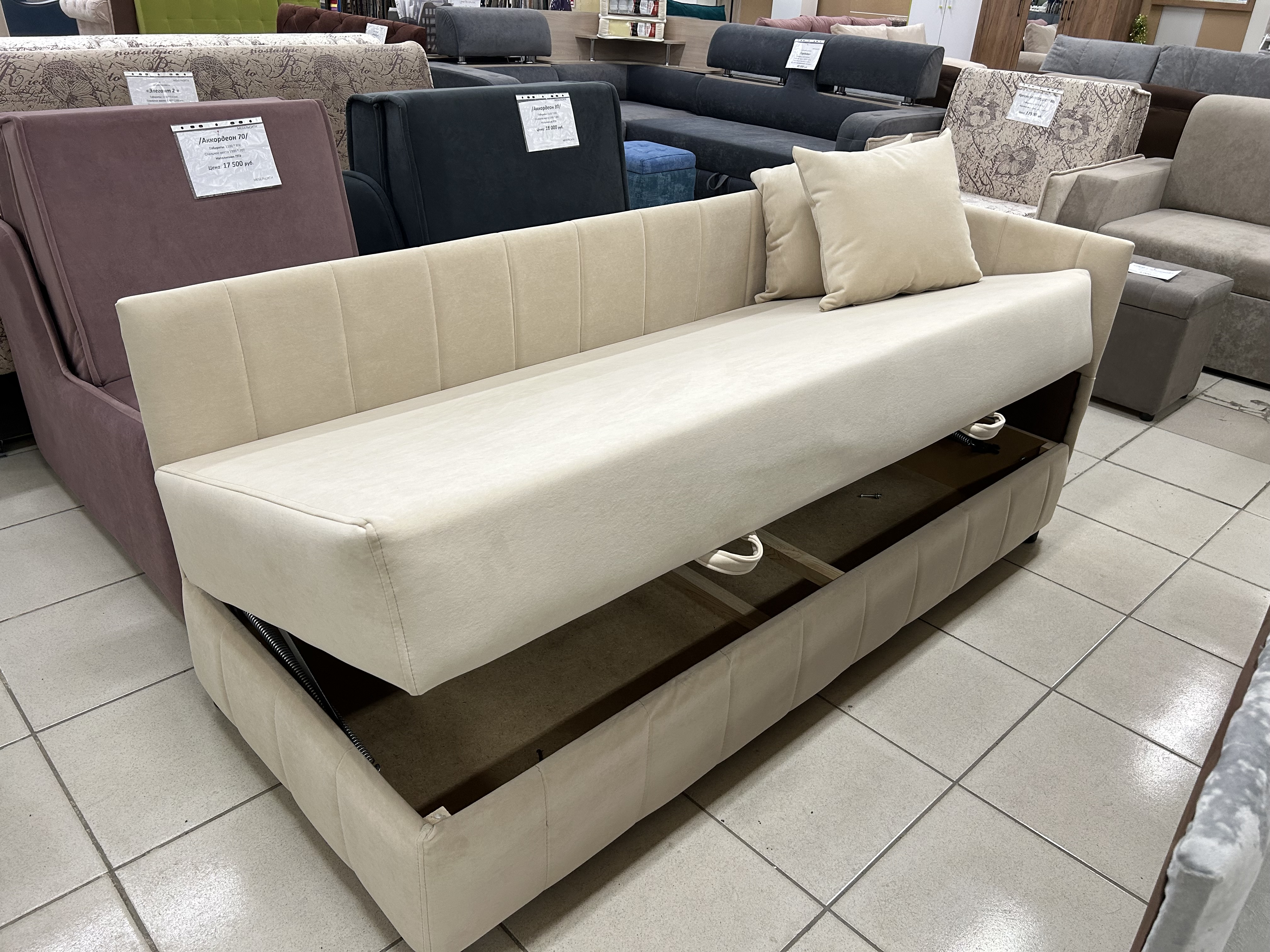 Ширина и длина спального места меняется. Имеется большой ящик для белья. Угол заказывается на любую сторону. Дополнительно, можно заказать подушки. Варианты изголовья могут быть разными. Также можно изменить наполнение (полностью Пенополиуретан или Пружинный блок). Палитра тканей представлена в разделе Ткани.
